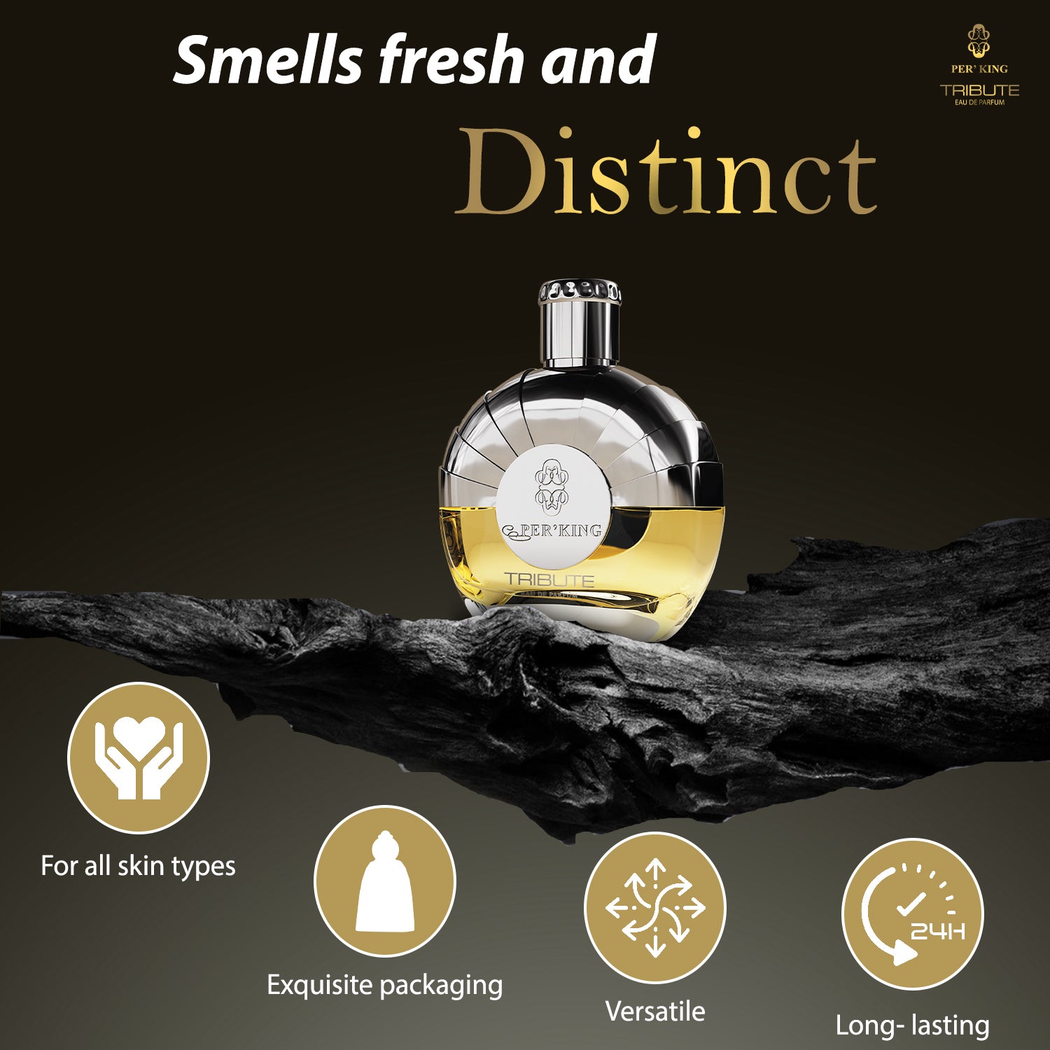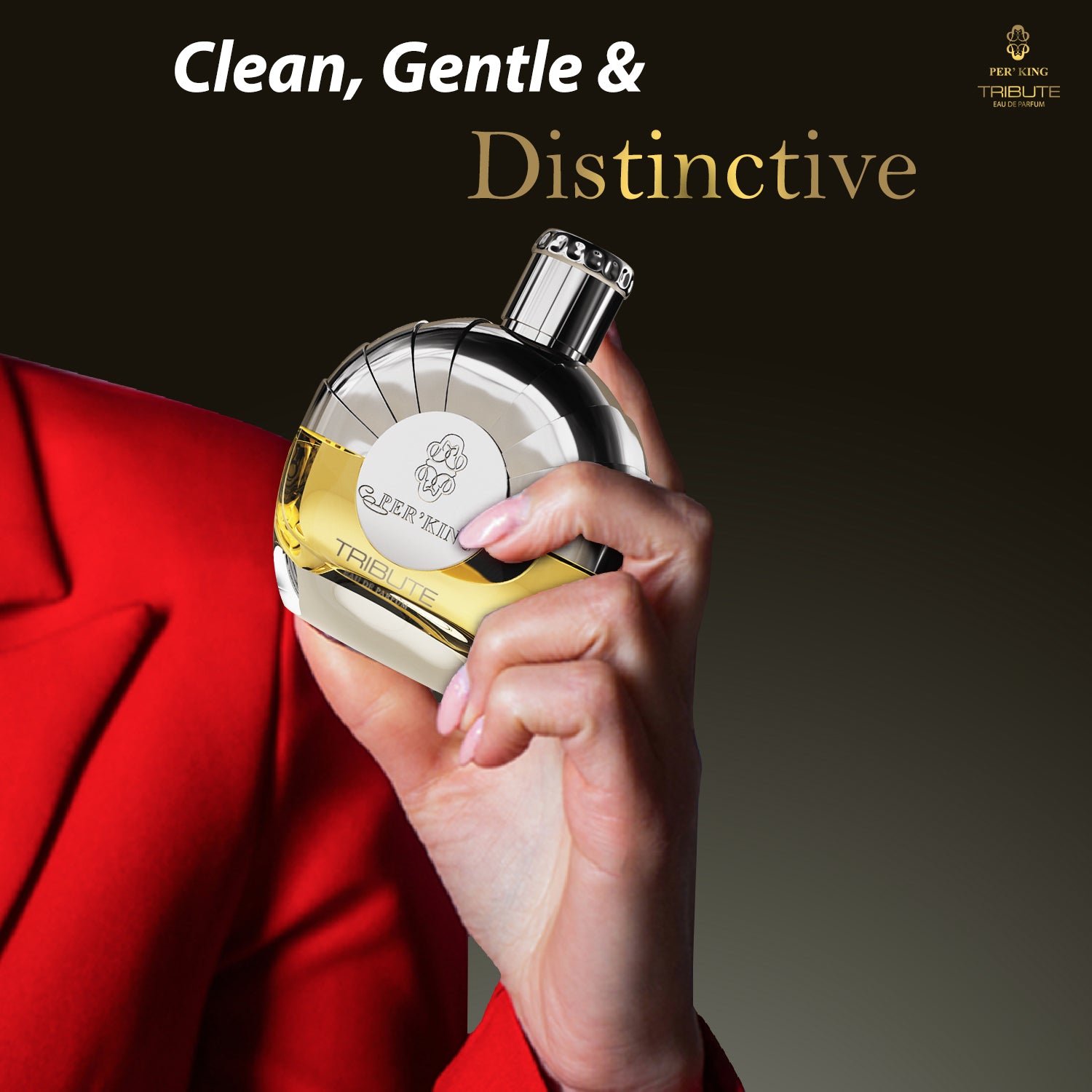 - CLEAN, GENTLE, AND DISTINCTIVE: Men and women of all ages are drawn to the gift-ornamental scent - Per'King Tribute 3.4 Eau De Parfum. The perfume smells fresh and distinct, with a clean scent. Feel capable and prepared to face the world in any conversation or situation. You can wear this unisex scent as a stylish accessory with your partner.